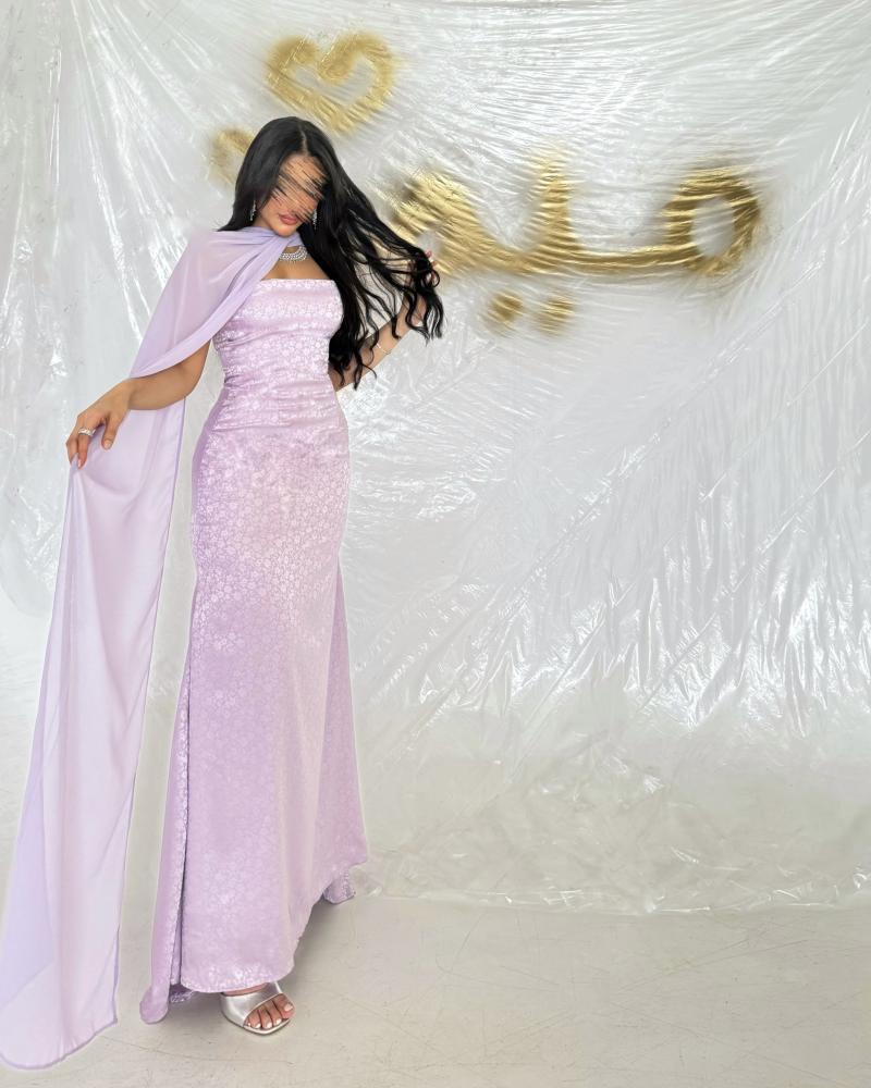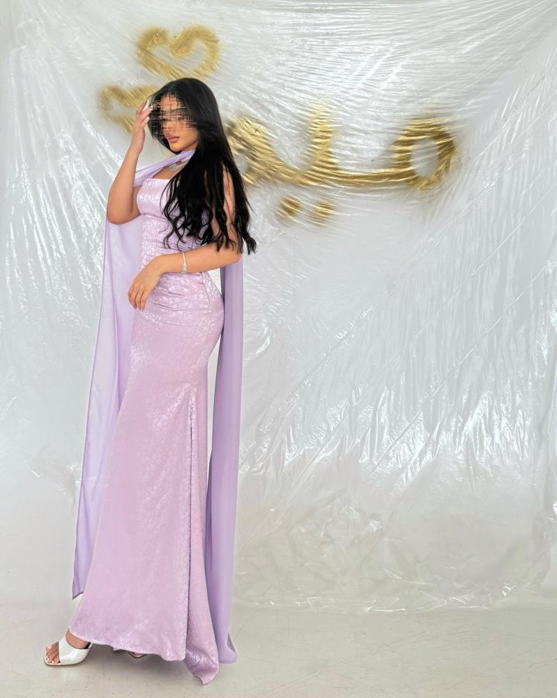 طول الفستان : من الأمام ٥٦ انش ومن الخلف ٦٠ انش ( قابل للتعديل)